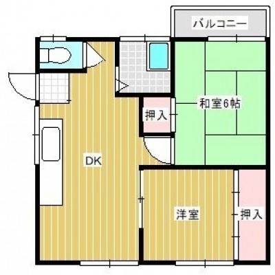 2DK|築46年|2階/2階建			 |